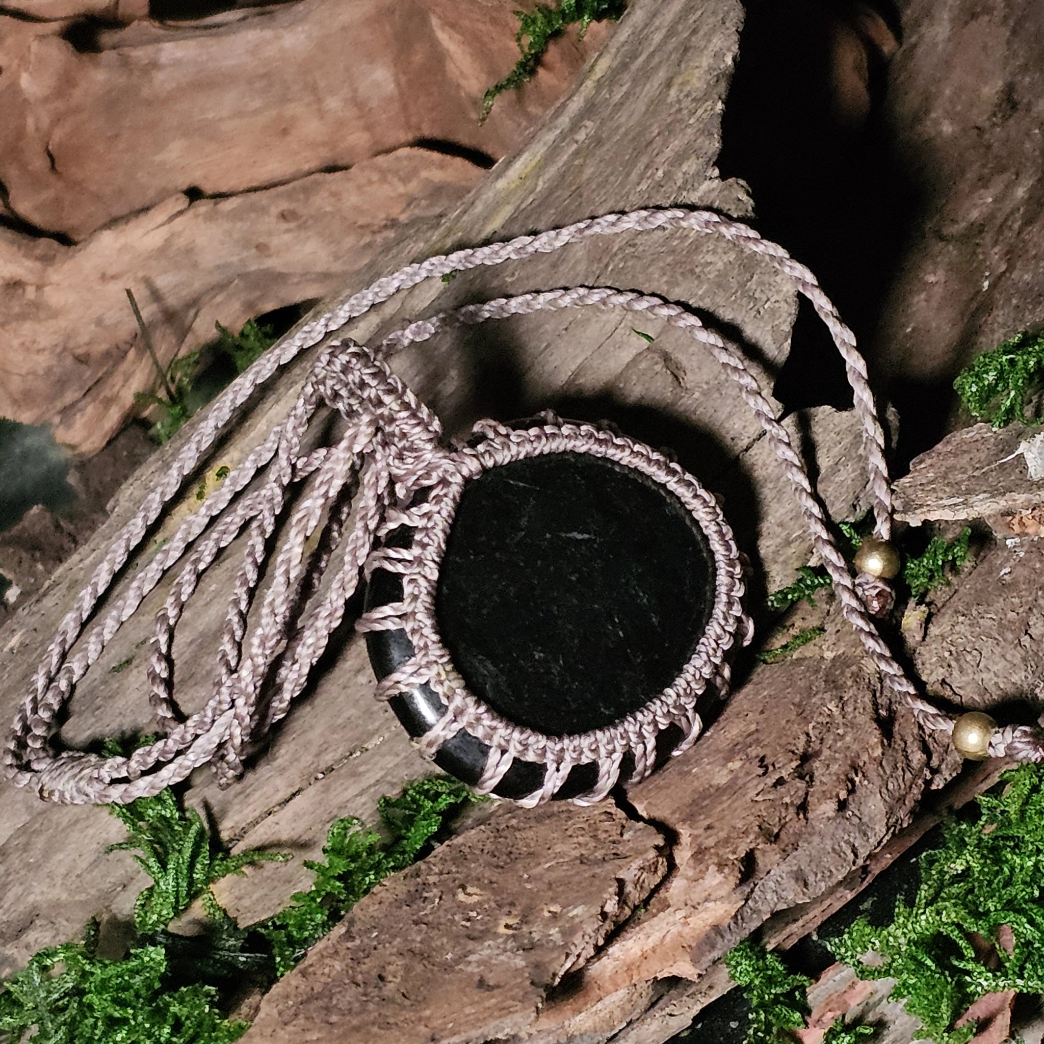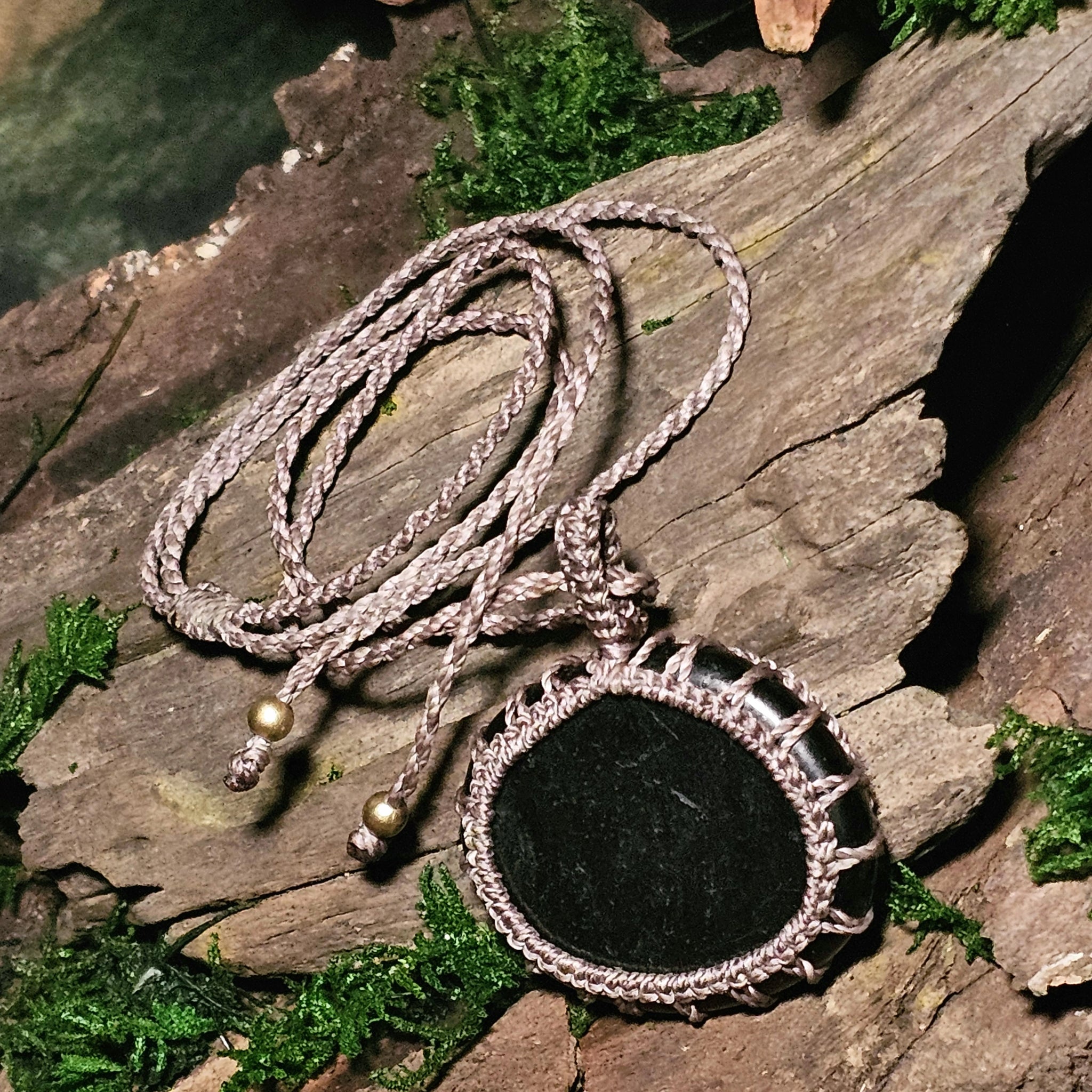 Woven for protection and clarity, this round jet pendant holds quiet strength. Traditionally worn in mourning and transition, jet supports those navigating grief, energetic boundaries, or deep emotional processing. Its matte black surface absorbs and transforms — shielding without hardening.